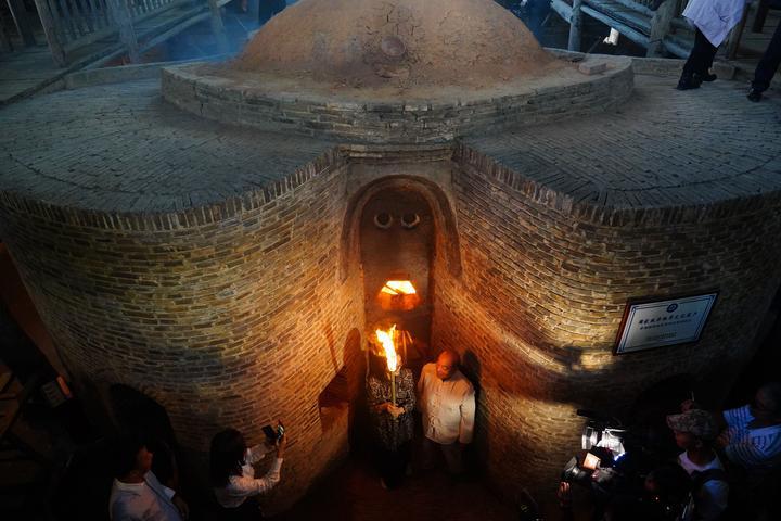 烧窑师傅胡家旺参加明代葫芦窑复烧点火仪式。新华社记者周密摄