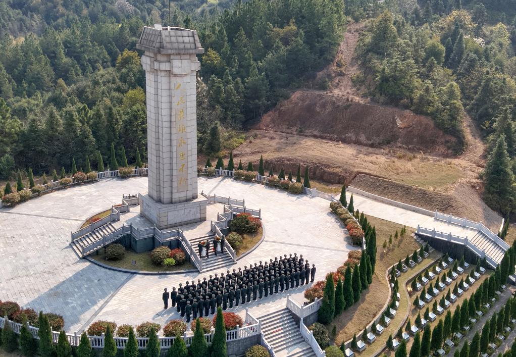 2025年4月2日,陆军第72集团军某旅组织官兵赴驻地抗日烈士陵园开展祭扫活动(无人机照片)。新华社发(张毛 摄)